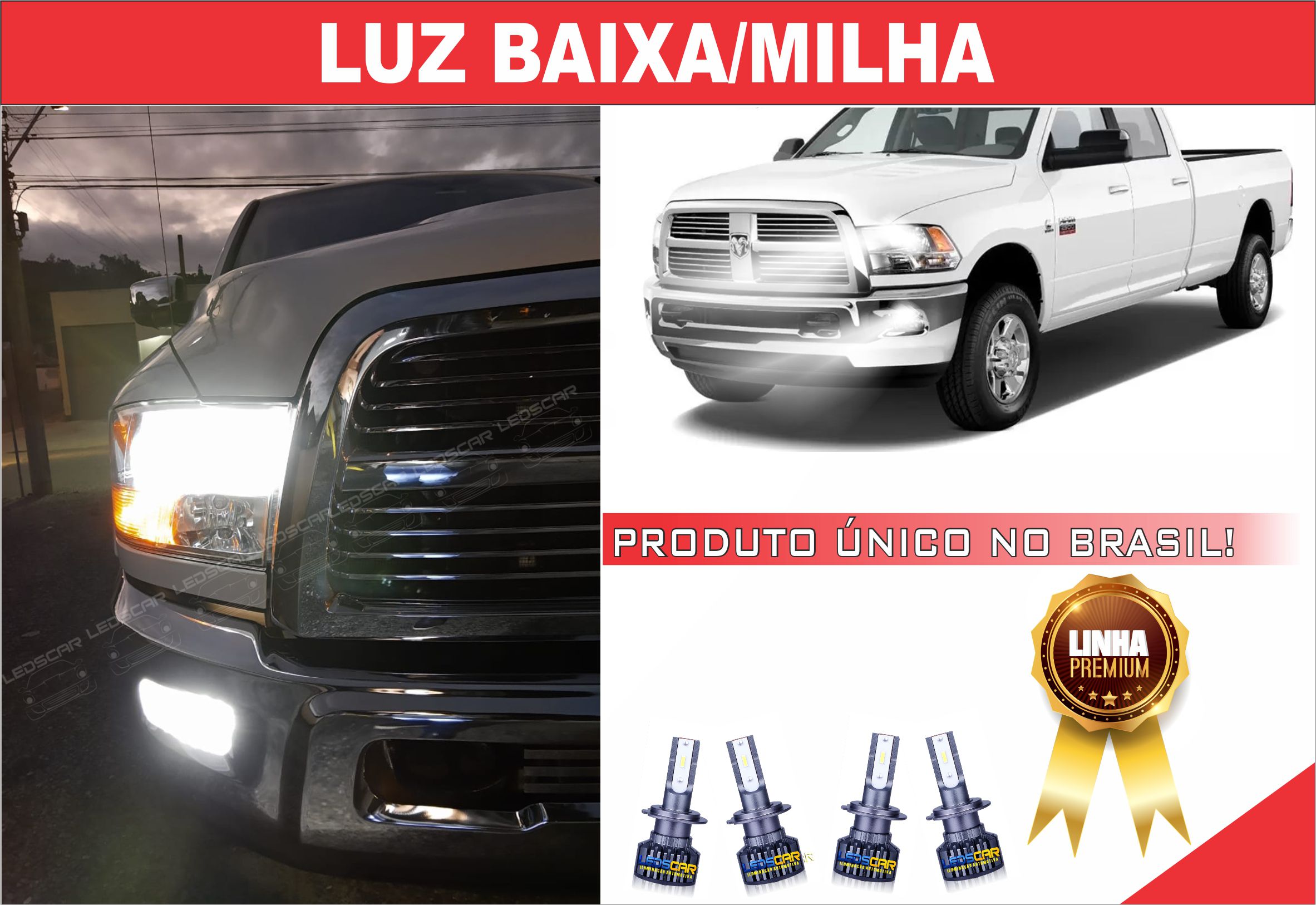 - 02 Pares Ultra Led Premium Luz Baixa e Luz Milha Dodge Ram 2012 (SEM PROJETOR)